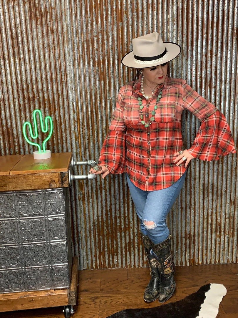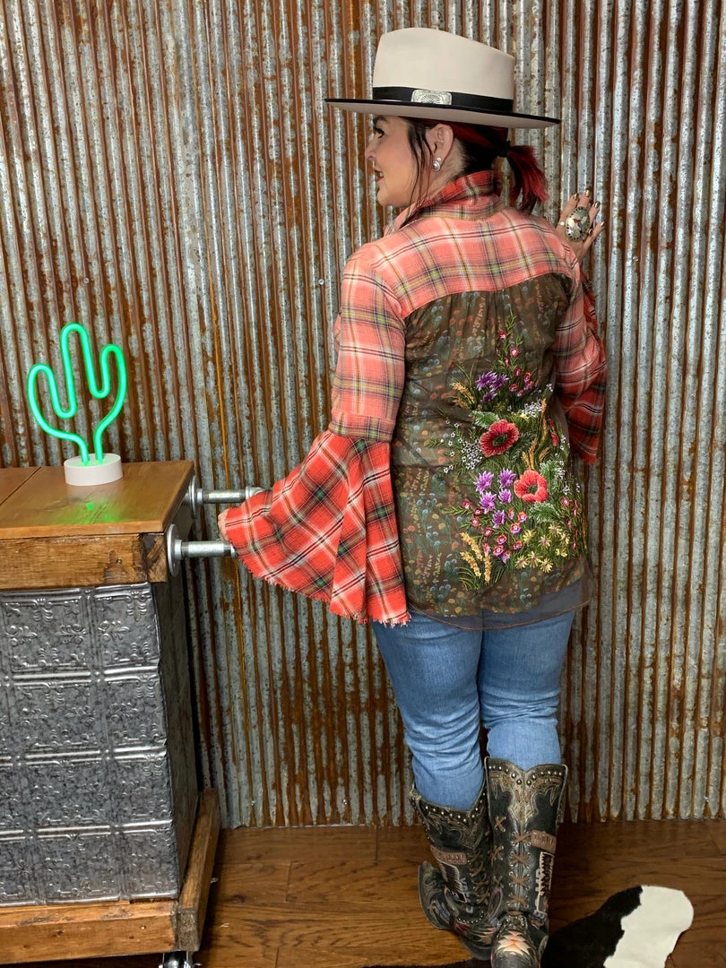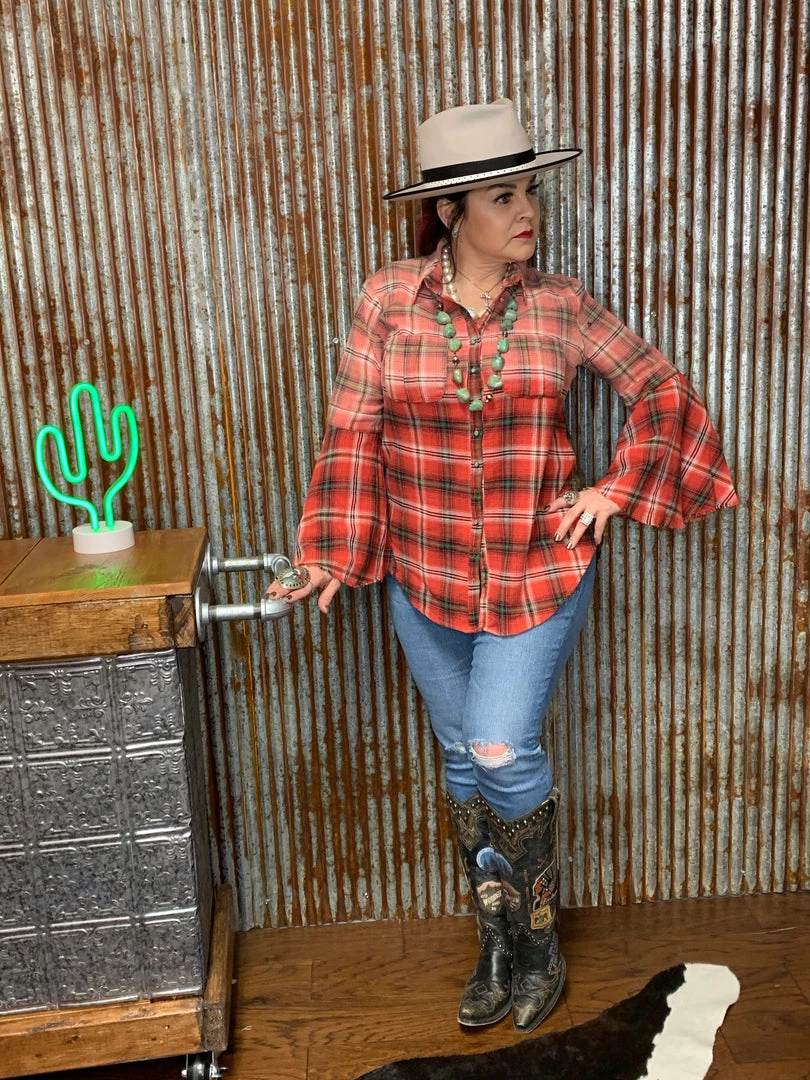 So much detail and can be worn buttoned up or open you decide!!! Β The bell sleeves just make it that much more extra!!