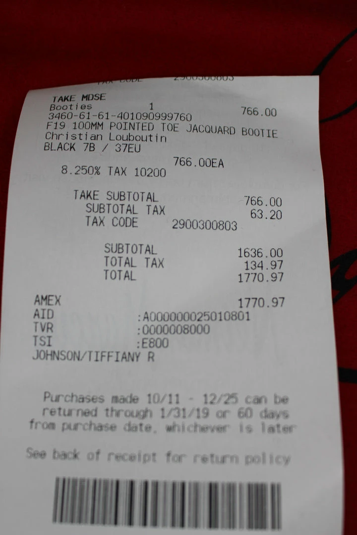 Christian Louboutinβs So Kate ankle boot. Β Theyβre crafted in Italy to a sleek point-toe silhouette that rests on a high stiletto heel and finished with a signature red leather sole. Β Loved these stilettos π they were just too high for me. Β I love how they have the signature wrote all over the shoe. Β The designs are a metallic gold and silver to add the little sparkly. Β Box and dust bags included.