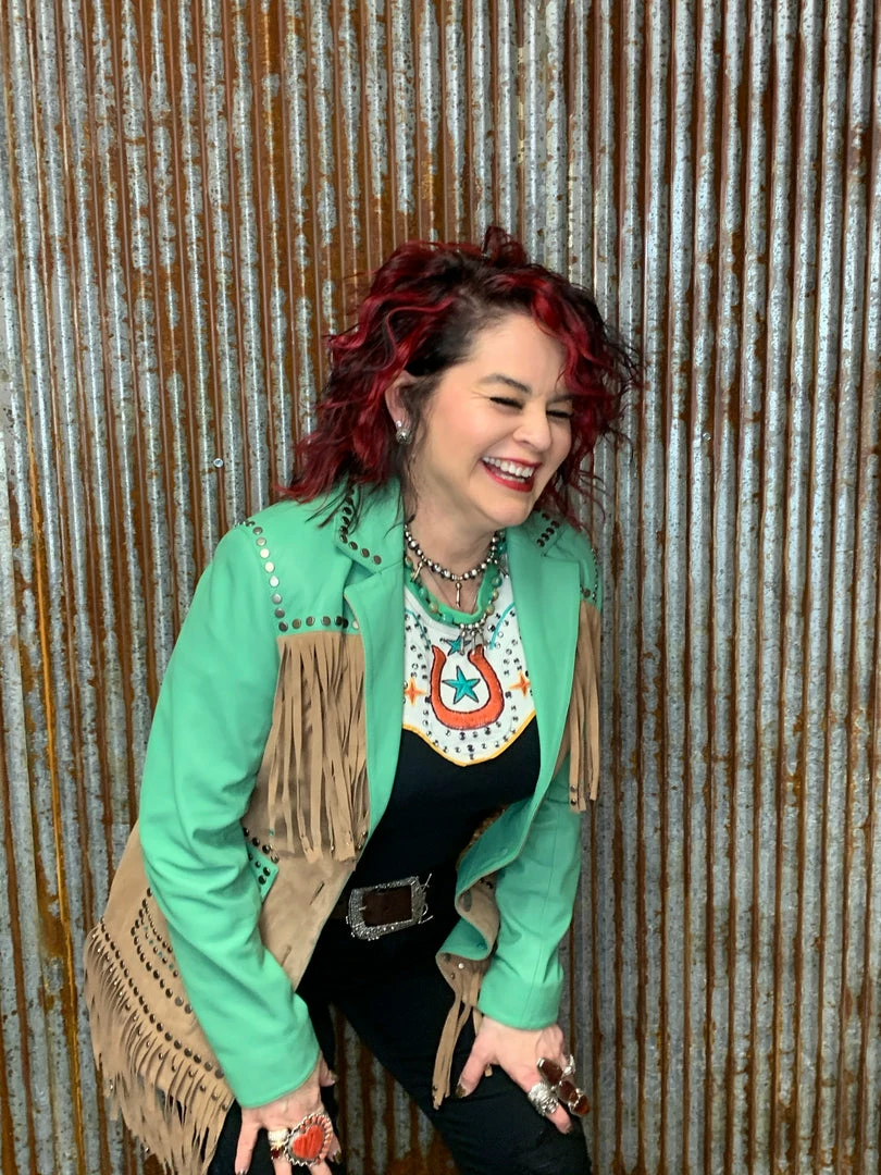 Lucky you! Β This colorful fitted tee features fun, funky hand-embroidered pattern of stars, a couple of martinis, and horseshoe for good luck, trimmed with contrasting collar and cuffs. Β Itβs a fun tee to throw on with your favorite pair of jeans to tackle your day in style.
