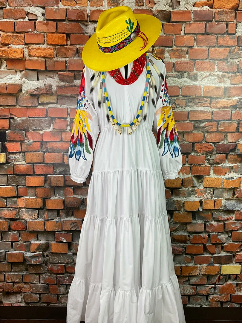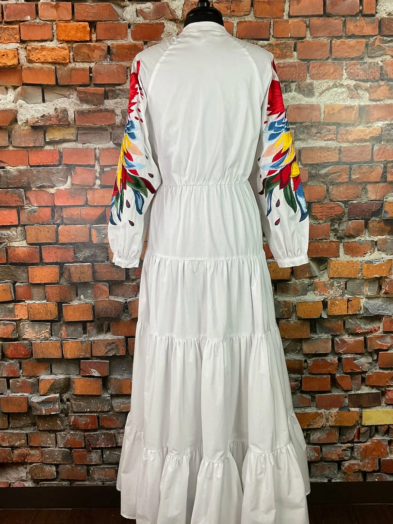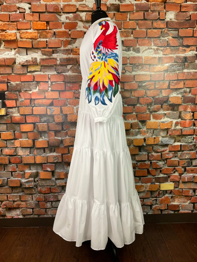 This bold colored embroidered peacock on the sleeves is quite a statement piece!Β Β