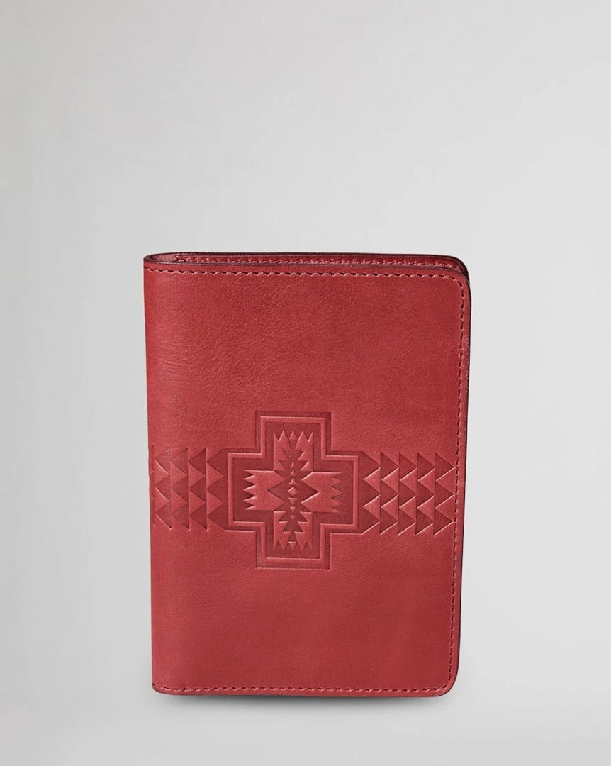 A smart, stylish case crafted of sleek leather with an embossed pattern on front. Inside are multiple slots for passport, cards, receipts and more.