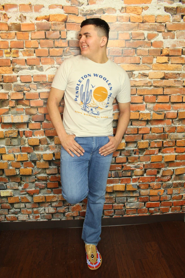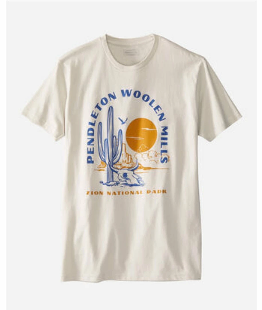 Men’s T-shirt in a soft combed cotton knit, with a vintage-inspired scene of Zion National Park on front.