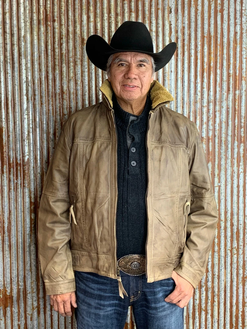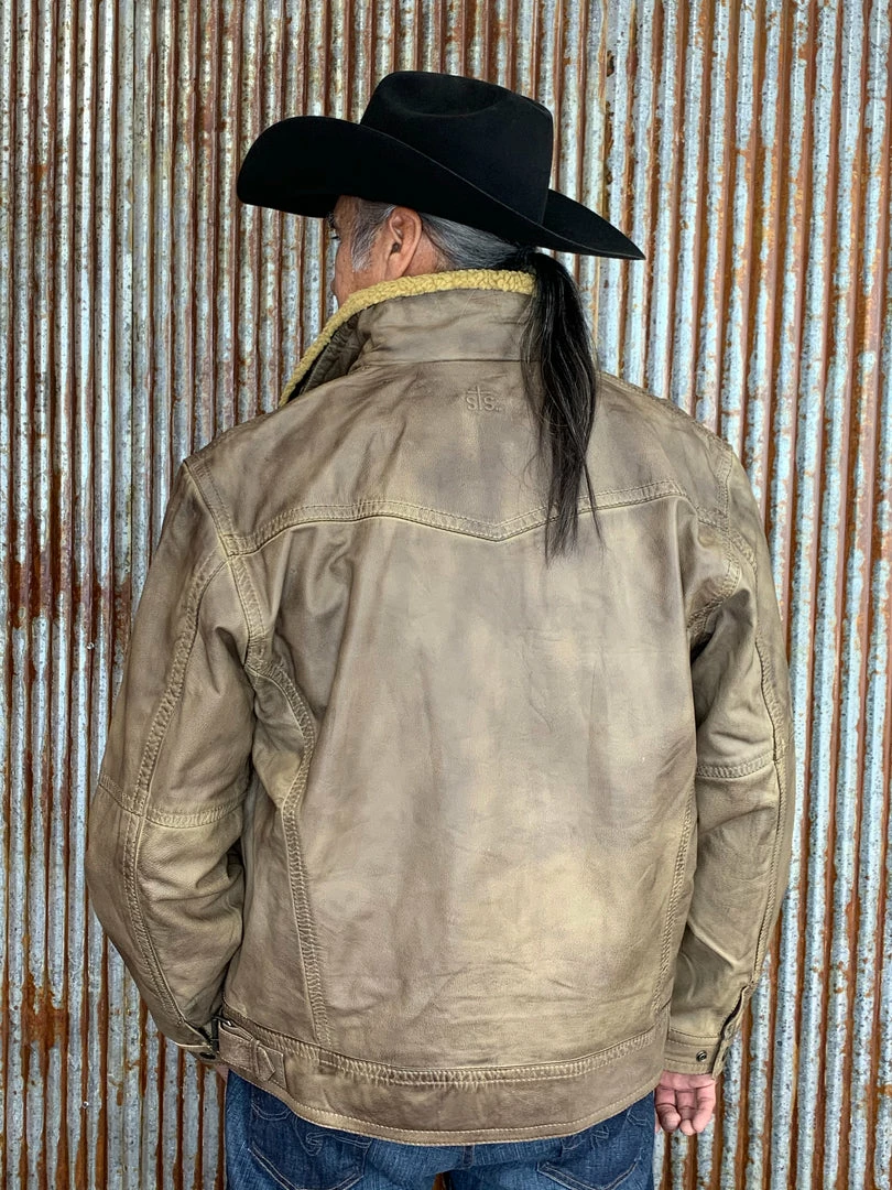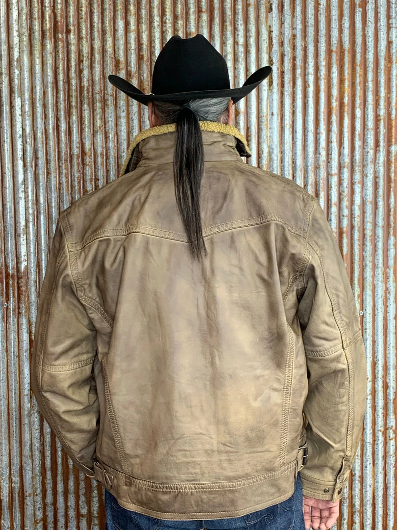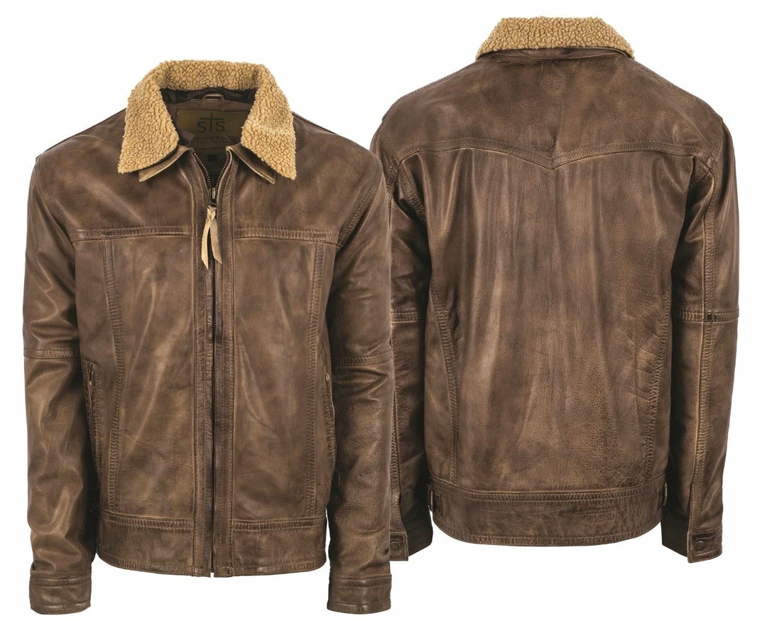 The Longmire by STS Ranchwear is a vintage style leather jacket with a removable sherpa collar.