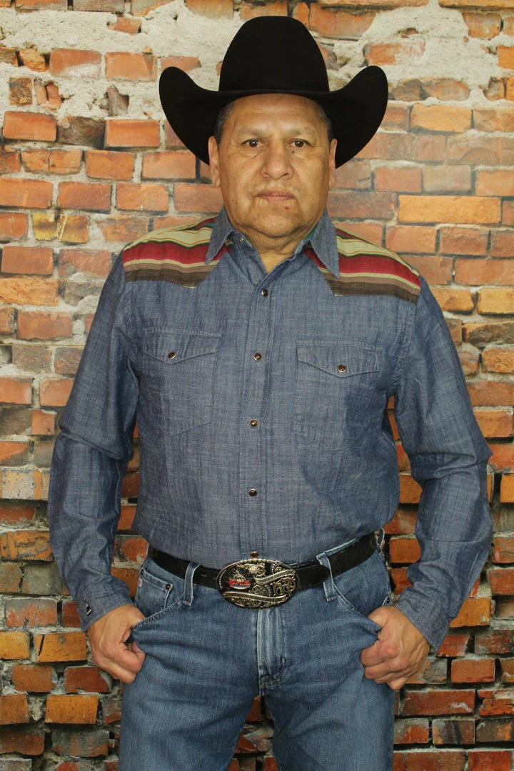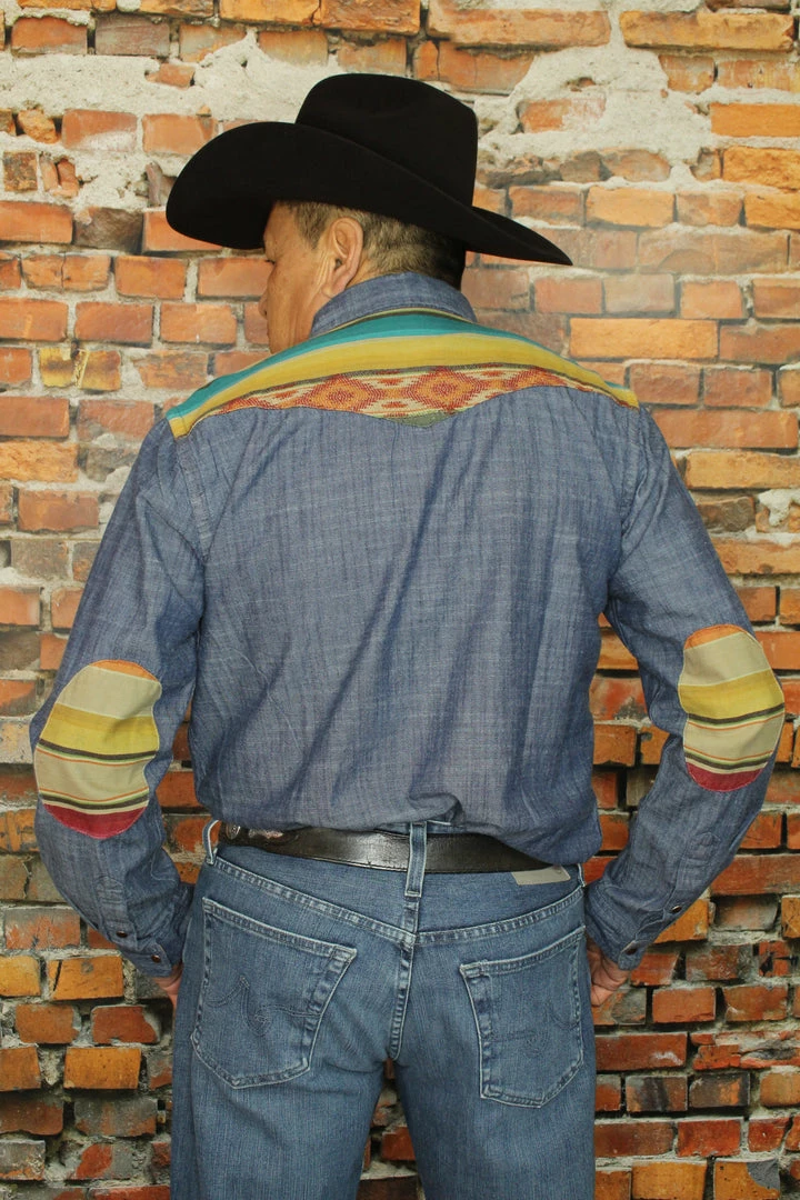 Tasha Polizzi Menβs Hank Shirt washed denim with serape trim. Β