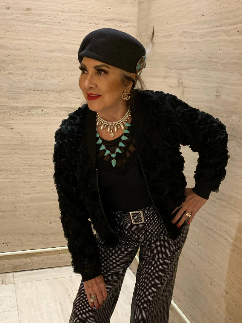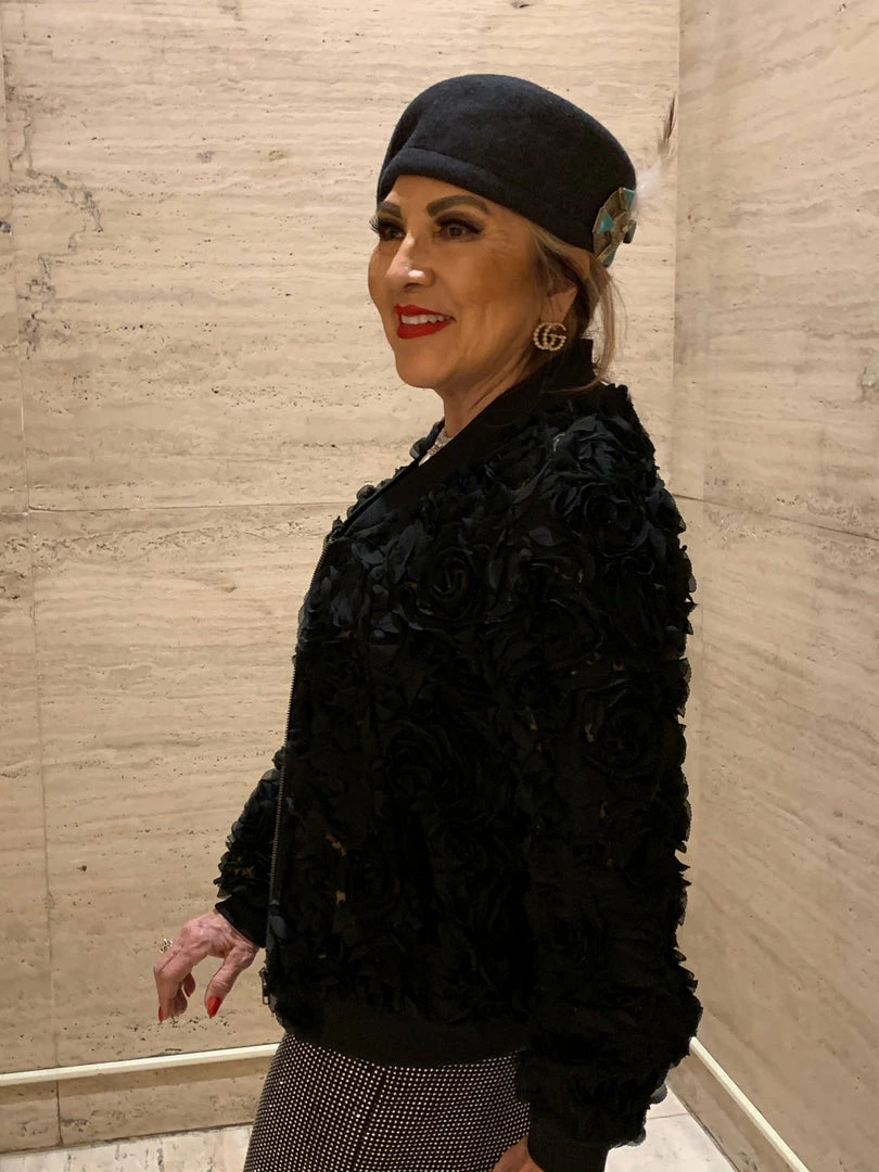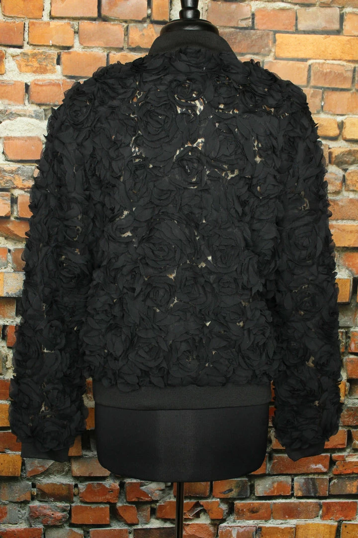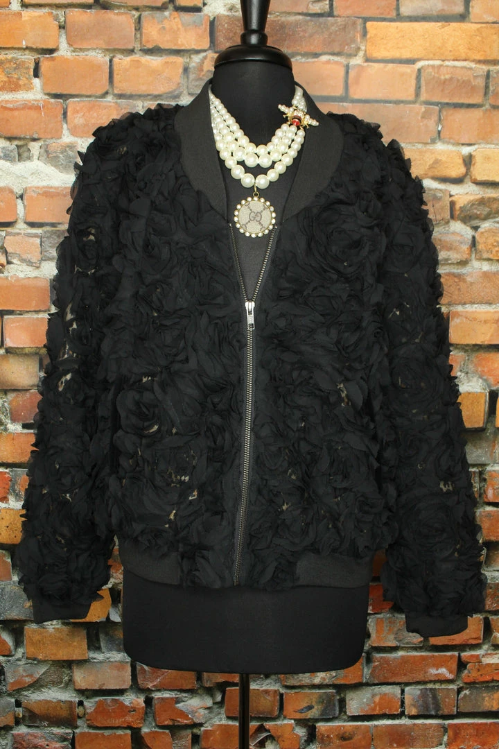 Beautiful and stunning rosette jacket with peekaboo leopard underneath! Β Great date night jacket with your sweetheart!