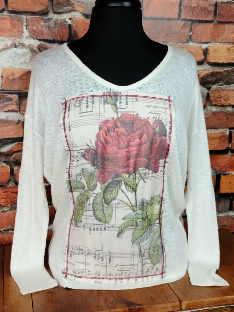 How can he feel anything but romantic when he sees you in this beautiful rose sweater.