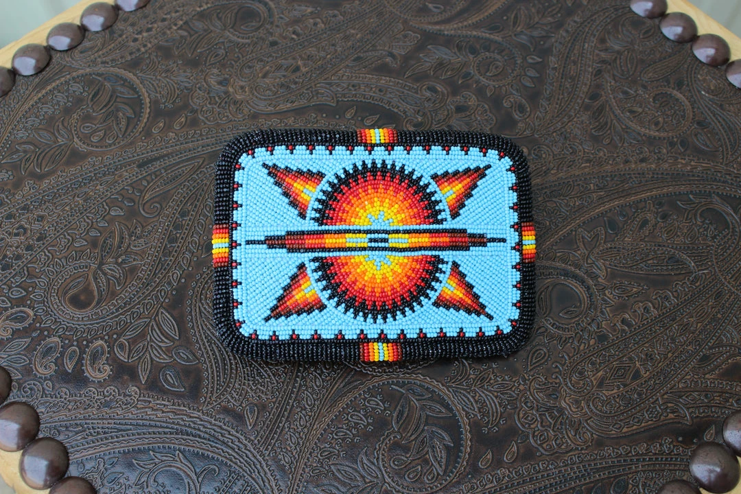 Outlet 🧨 The Sparkling Spur Accessories Turquoise & Black Large Rectangle Beaded Buckle With Cut Beads πŸ›’