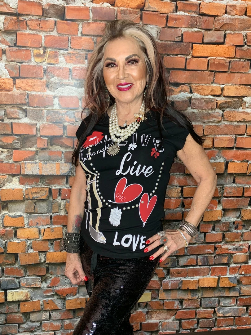 Day or night this super comfy tee is bound to become a favorite of yours to live & love in!