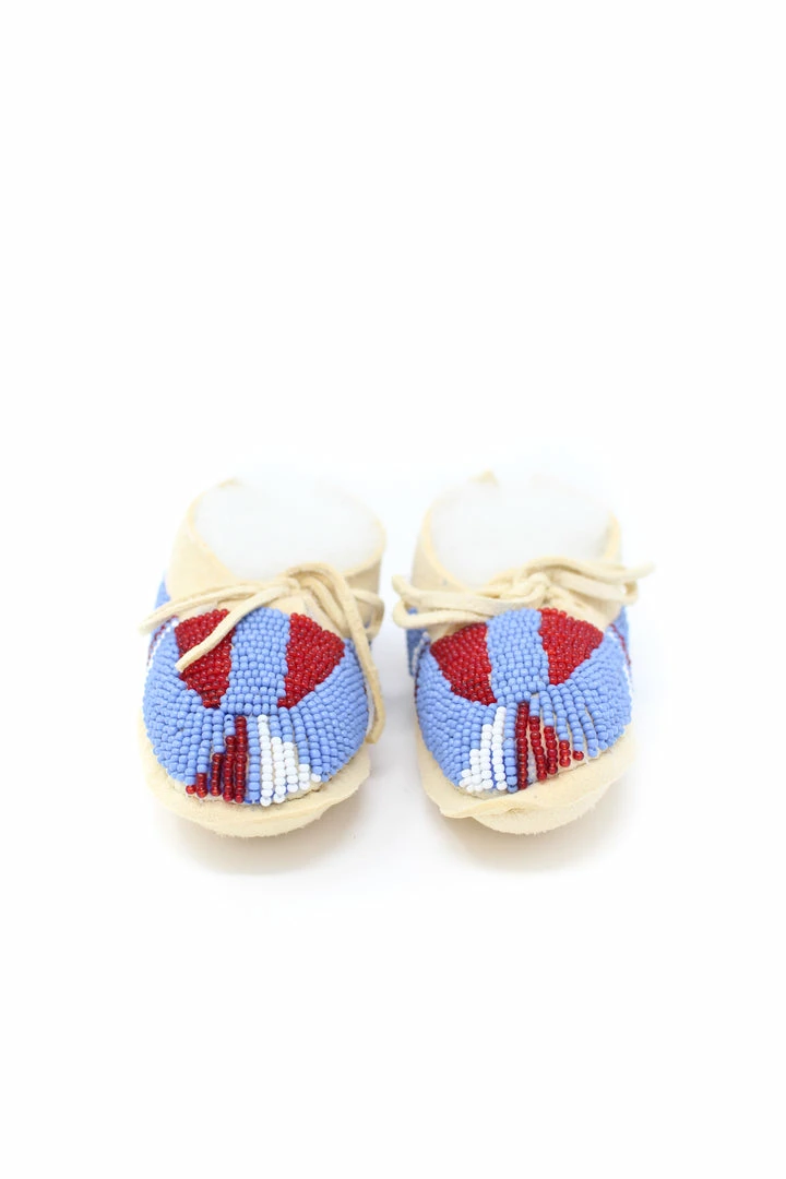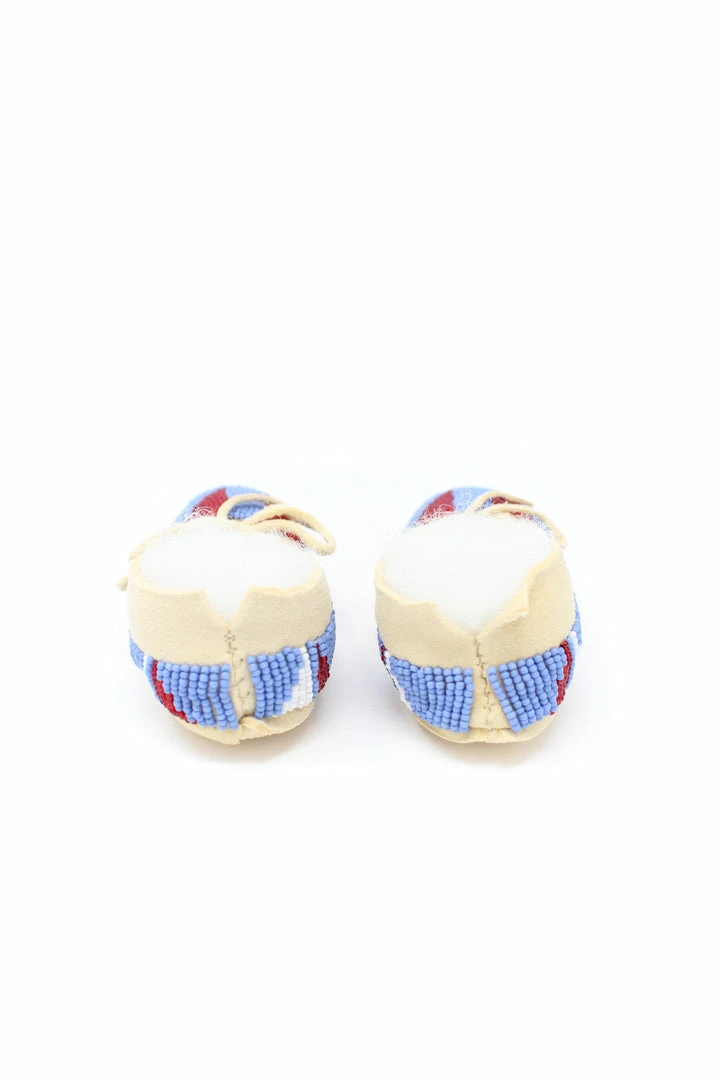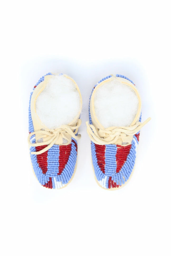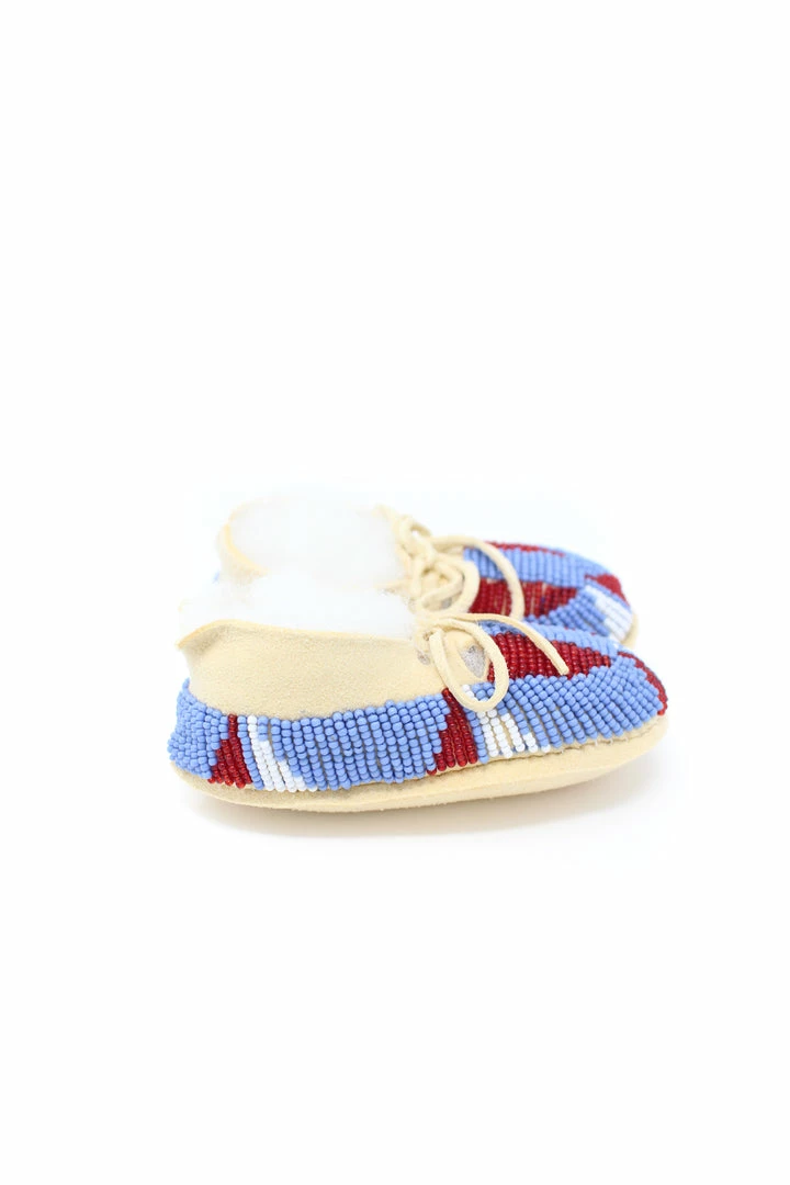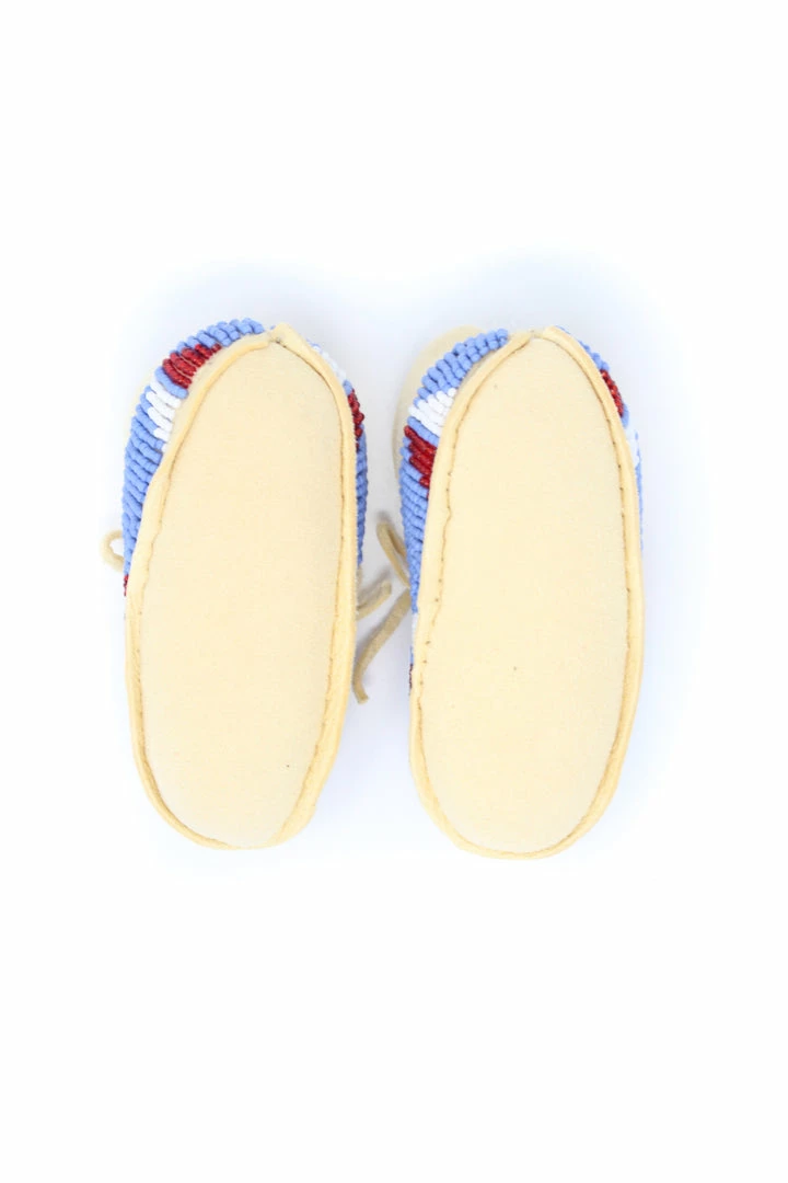 Tanned hide baby moccasins adorned with size 11/0 seedΒ beads.Β
