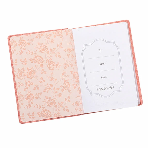 - Journal is 5.75″ x 8.25″ 400 lined, pages with Scripture interspersed