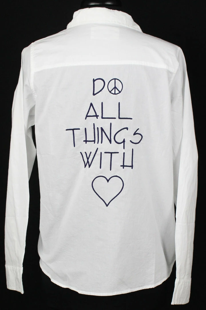 Express yourself in this boyfriend style, button down front, white cotton shirt.
