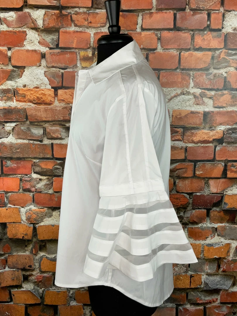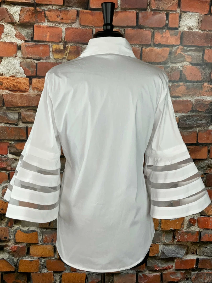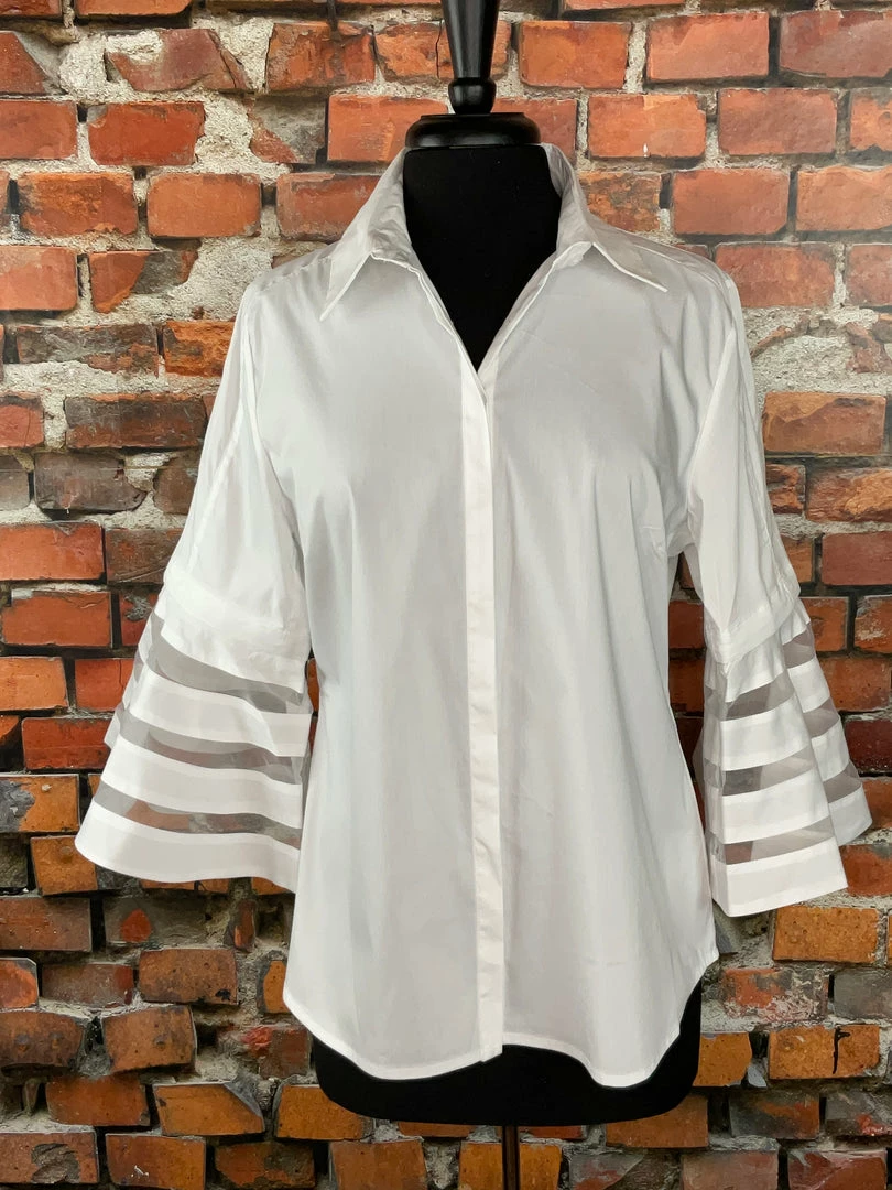 Put some flare in your business white button-up shirt!Β A little pizazz says you’re going a long way baby!Β Taylored style gives this medium Tiffiany’s wearing the perfect fit and true to size.