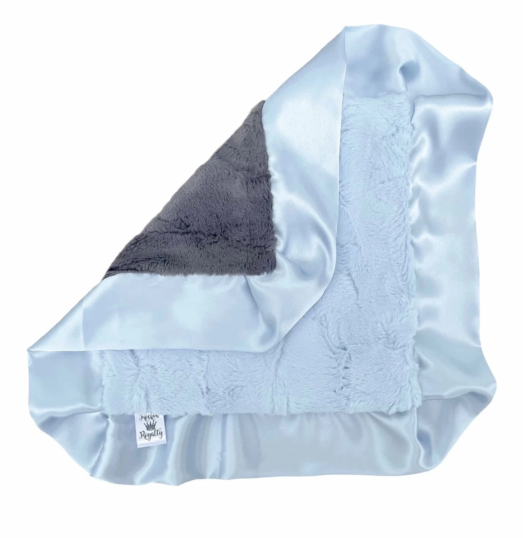 This cuddleΒ lovie includes fabulousΒ faux furΒ on both sides and is trimmed with a generous satin ruffle that the babies love to snuggle with! Approximately 15″ X 15″.