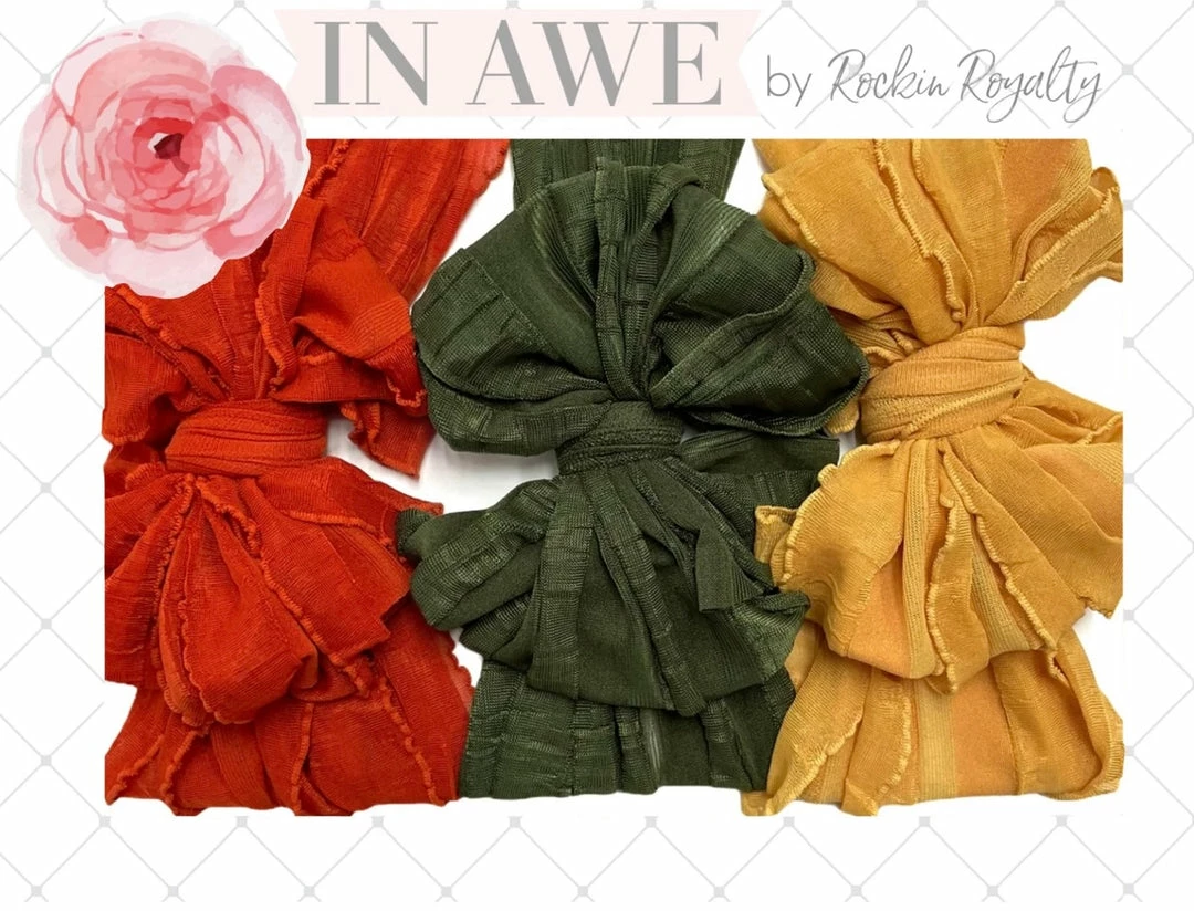 The perfect first bow starter kit including deep western coloredΒ popular headbands! Fits nb-4yrs. Includes Burnt Orange, Cedar Green, Mustard.